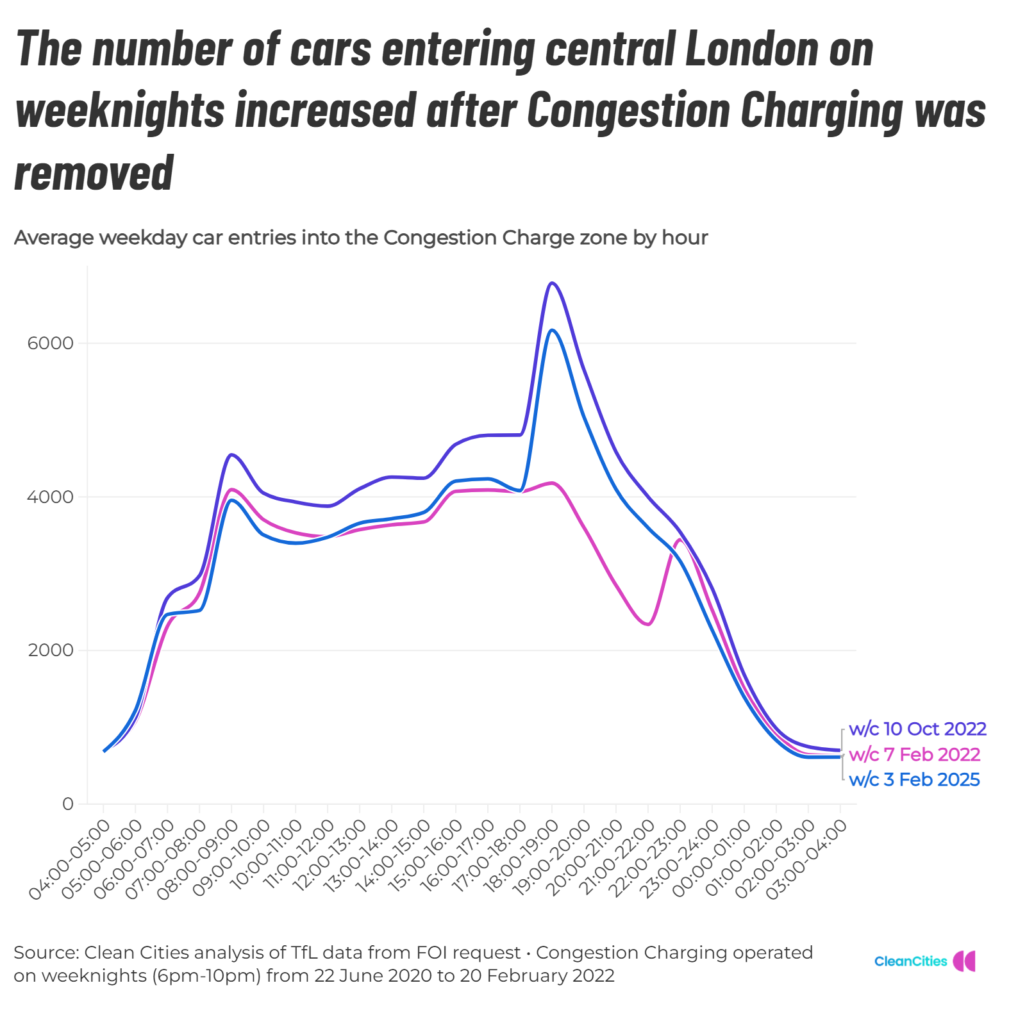 Traffic gridlock isn’t inevitable, it’s the result of policy choices – when weeknight Congestion Charging was in place, traffic fell.