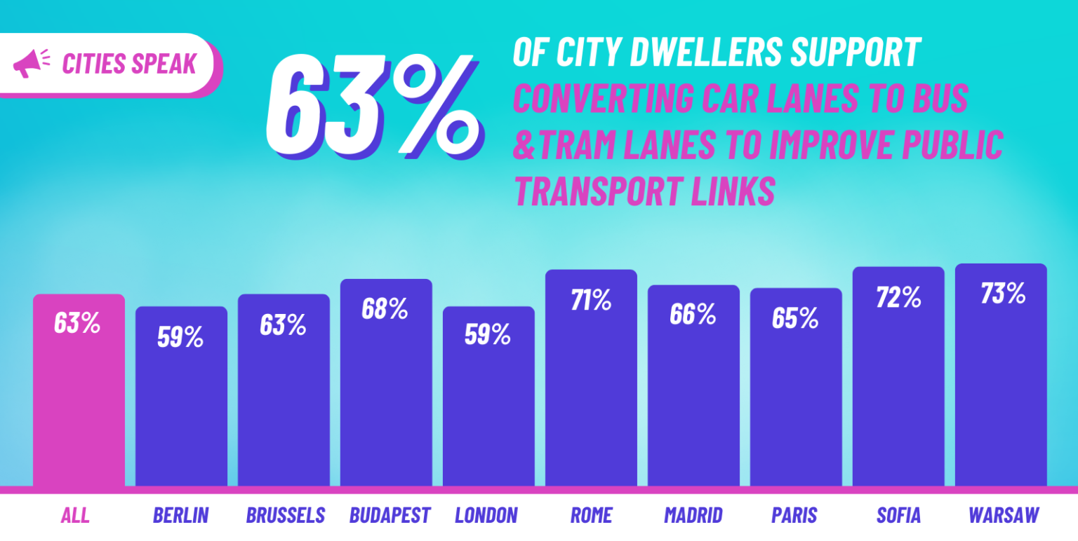 Cities Speak: The Clean Cities Urban Mobility Barometer gives people a voice on key urban mobility issues. Residents across nine European capitals – Berlin, Brussels, Budapest, London, Rome, Madrid, Paris, Sofia, and Warsaw – shared opinions on their city’s mobility.